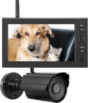 Outdoor Security Camera, Home Security Surveillance Camera, IR Night Vision, Motion Detection and Remote View with 4CH Surveillance Monitor System Display and TF Card