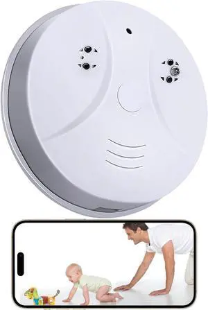 Smoke Detector Camera - Security Indoor Camera Mini 200 Days Standby 1080P WiFi HD Night Vision PIR Motion Detection Wireless Small Nanny Cam