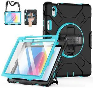 iPad 10th Generation Case, iPad 10 Case 10.9'' 2022, [Kid Proof] Full Body Protective Case with 9H Tempered Glass Screen Protector, 360° Rotatable Kickstand & Hand Strap (Teal & Black)