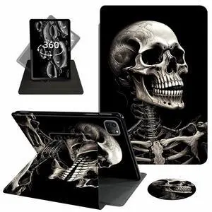 ACWDMKH for iPad Air 13 Inch Case M3 2025/M2 2024,for iPad Pro 12.9 Inch Case 2022/2021/2020 (6th/5th/4th Generation),360 Degree Rotating Swivel Stand Folio Auto Wake/Sleep,Cute Skull Black