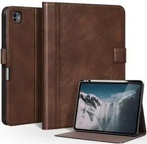 CPNVWA Genuine Leather Case for iPad Pro 13 Inch M5 2025 / M4 2024 Premium Folio Cover with Pencil Holder Auto Wake/Sleep & Adjustable Stand - Vintage Dark Brown