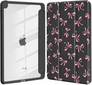 Idocolors Cute Bow Case for iPad Air(2024) 13 ", Clear Hard Back Cover with Pencil Holder, Tri-fold Stand Full Wrap Protective Case for Women Girls, Pink Bow/Black
