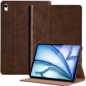 Gexmil Genuine Leather Case for iPad Air 13 Inch M4/M3/M2 (2026/2025/2024),Premium Leather Smart Folio Cover, Auto Sleep/Wake,Adjustable Stand, Anti-Slip,Dark Brown