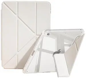 Slim Case for iPad 10.2 Inch 9th/8th/7th Generation (2021/2020/2019) with Pencil Holder, Multi-Angle Trifold Stand, Auto Sleep/Wake, Leather and Clear Acrylic Back Protective Cute Cover (Cream)