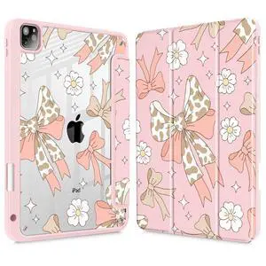 Tuiklol for iPad Pro 11 Inch Case M2 2022 Gen 4th -Built-in Pencil Holder Shockproof Cover Clear Transparent Back Shell Fit for iPad 11 2021 2020 2018 Gen 3rd/2nd/1st for Kid,Leopard Bow Gary