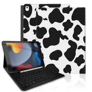 TopPerfekt for iPad 9th Generation Keyboard Case 10.2inch 2021, Magnetically Absorbent, Auto Sleep/Wake, Pencil Holder for iPad 8th Gen 2020, 7th Gen 2019, Air 3rd, pro 10.5inch - Black Cow