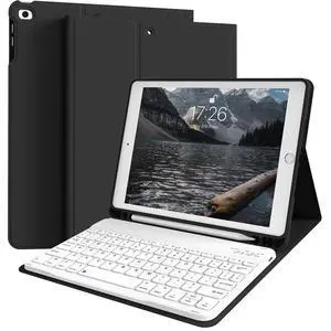 kenke for iPad 6/5th Generation Case with Keyboard 9.7 Inch 2018/2017 iPad Air 2/1, Detachable Wireless Bluetooth iPad Keyboard Case with Built-in Left Side Pencil Holder Auto Wake/Sleep (Black)