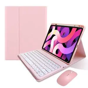 KMXDD Keyboard Case Mouse Compatible with iPad Air 11 inch M3 M2/ Air 5th 4th Generation 10.9" / iPad Pro 11 4th/3th/2th/1st Gen Case with Round Key Cute Removable Color Keyboard,Pink