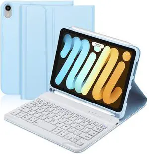 BORIYUAN Keyboard Case for iPad mini (A17 Pro) 7th Generation 2024 / iPad mini 6th Gen 8.3 Inch, Detachable Wireless Bluetooth Keyboard, Soft TPU Back Cover with Build-in Pencil Holder, Sky Blue