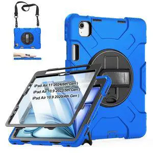 Case for iPad Air 11 M4 2026/ M3 2025/ M2 2024: Silicone Cover for iPad Air 5th & 4th Generation 10.9 Inch (2020/2022) with Screen Protector- Stand- Handle- Shoulder Strap- Pencil Holder