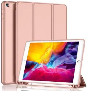 iMieet iPad 9.7 Case (2018/2017 Model, 6th/5th Generation), Smart Cover with Pencil Holder and Soft Baby Skin Silicone Back and Full Body Protection, Auto Wake/Sleep Cover (New Rose Gold)