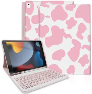 TopPerfekt for iPad 9th Generation Keyboard Case 10.2inch 2021, Magnetically Absorbent, Auto Sleep/Wake, Pencil Holder for iPad 8th Gen 2020, 7th Gen 2019, Air 3rd, pro 10.5inch - Pink Cow