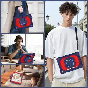 iPad 9th/ 8th/ 7th Generation Case (iPad 10.2 Case, iPad 9/8/ 7 Gen Case): with Strong Protection, Screen Protector, Hand Strap, Shoulder Strap, Rotating Stand, Pencil Holder - Dark Blue