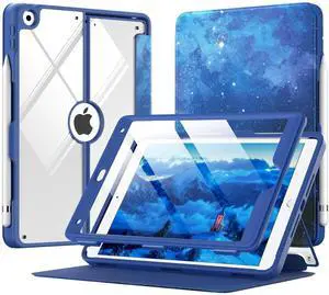 MoKo Case for iPad 9th Generation 2021/ iPad 8th Generation 2020/ iPad 7th Gen 2019 with Pencil Holder, Built-in Screen Protector Clear Back, Multi Angle Stand, with Auto Wake/Sleep, Blue Starry Sky
