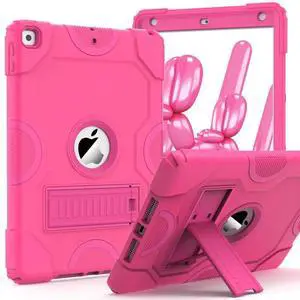 ZoneFoker for iPad 9th 8th 7th Generation Case, iPad 10.2 Inch 2021/2020/2019 Case, Heavy Duty Rugged Shockproof Protective Cover with Kickstand for Girls Kids Women Hot Pink