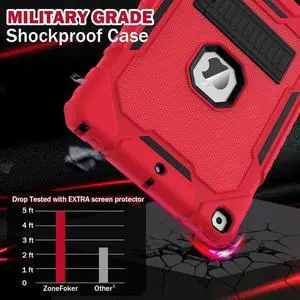 ZoneFoker Case for iPad 9th/8th/7th Generation 2021/2020/2019(10.2 inch), Heavy Duty Shockproof Rugged Protective 10.2" Cover with Built-in Kickstand for iPad 9 8 7 Gen (Red+Black+Black)