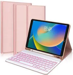 iPad 9th 2021/8th/7th Generation Keyboard Case, BORIYUAN 7 Colors Backlit Detachable Keyboard Folio Smart Cover for iPad 10.2"/iPad Air 10.5"(3rd Gen)/iPad Pro 10.5" with Pencil Holder Champagne Pink
