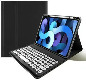 kaitesi Keyboard Case for iPad 9th Generation 8th 7th Gen 10.2"/ iPad Air 3rd Gen 10.5"/iPad Pro 10.5 inch Keyboard Case Detachable BT Keyboard Round Key (Black)
