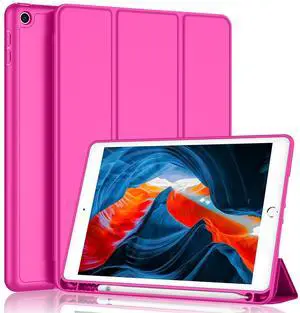 iMieet iPad 9th Generation Case 2021/iPad 8th Generation Case 2020 10.2 Inch with Pencil Holder, iPad 7th Gen 2019 Case with Soft Baby Skin Silicone Back, Auto Wake/Sleep Cover (Rose Red)