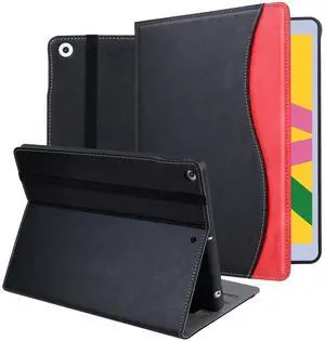 HFcoupe for iPad 9th / 8th / 7th Generation Case 2021/2020/2019, Full Body iPad Cover 10.2 inch with Pencil Holder and Pocket, Multiple Angles Viewing Smart Cover Auto Sleep/Wake, Black/Red