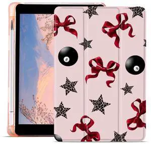 AdorableWhimsy Bow & Star Case for iPad 9th/7th/8th Generation(2021/2020/2019 10.2 Inch) with Pencil Holder Cute Leopard Print Aesthetic Design Trifold Stand Leather Protective Cover