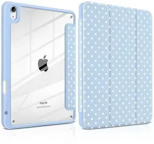 Yebiseven Case for iPad Air 11 Inch M4 M3 M2 2026 2025 2024, iPad Air 5th 4th Generation 10.9 Inch 2022 2020-[Pencil Holder], Shockproof Clear Hard Back, Trifold Stand,Auto Wake/Sleep, Blue White dot