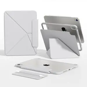 kenke Magnetic Case for iPad Air 11 Inch M4/M3/M2 (2026/2025/2024), iPad Air 5th/4th Generation 10.9 Inch (2022/2020) with Pencil Clasp, Multi-Folding Stand Cover Detachable Frame Shell, Light Gray