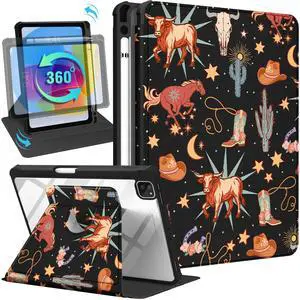 Uppuppy for iPad Air M4 11 inch Case for iPad Pro 11 inch Case - 360 Rotating Smart Folio Cover with Pencil Holder for Women Girls, Western Cowboy for Air 4th/5th/M2 2024/M3 2025, Pro 1/2/3/4 Gen