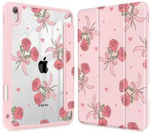 ICEKEE for iPad Air 11 Inch Case 7th/6th Gen (M3/M2) 2025/2024, for iPad Air 5th/4th Gen Case 10.9 Inch 2022/2020, Slim Stand Protective Cover with Hard Clear Back Shell Cover, Rose Bows