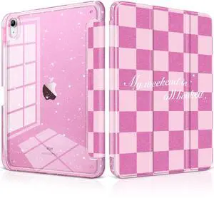 DONGKE Case for iPad Air 11 Inch (M4 2026 / M3 2025 / M2 2024) & iPad Air 10.9 Inch (5th/4th Gen 2022/2020) Slim Cover with Glitter Acrylic Back, Trifold Stand & Pencil Holder - Pink Checkerboard