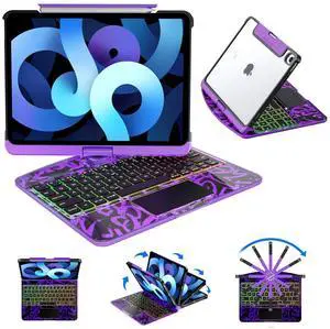 Keyboard Case for iPad Air 11" (M3/M2, 2025/2024) & iPad Air 10.9" (5th/4th Gen) & iPad Pro 11" (4th/3rd/2nd/1th Gen), iPad Keyboard with Multi-Touch Trackpad & 360 Rotation & Pencil Holder,purle