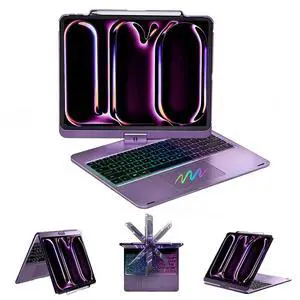 lelego Swivel Keyboard Case for iPad pro 13 Case with Keyboard(M5/M4, 2025/2024)&iPad Air 13 inch case(M3, 2025/M2, 2024) &iPad Pro 12.9 (6th/5th/4th/3rd Gen),Trackpad,Rainbow Backlit-Purple