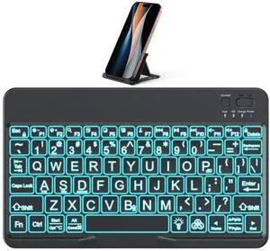 Full Size Bluetooth Keyboard with Phone Holder - Backlit Wireless Keyboard, Switch Multi Device, Quiet, Slim, Rechargeable, w/Copilot for iPhone, Tablet, PC, Mac, iPad, MacBook, iOS, Android - Gray- Keyboard Interface: Bluetooth