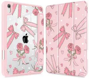 Tuiklol for iPad mini 7 (A17 Pro) 2024 / iPad mini 6 2021 8.3 inch Case, Built-in Pencil Holder Slim Clear Back Shell Cover Auto Wake/Sleep with iPad mini 7th / 6th Gen Cover, Bow & Rose