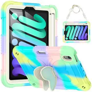 AOOCSHEY for iPad Mini 7 A17 Pro 2024/iPad Mini 6 2021 8.3 Inch Butterfly Case, Cute Girls Girly Strap Stand Kids Cover for iPad Mini 8.3" 7th Gen A2995 A2996 A2993/6th Gen A2567 A2568 A2569, Colorful