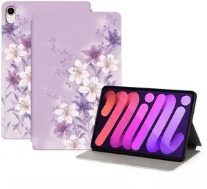 kaitesi Floral Case for iPad mini 7 A17 Pro 2024/iPad Mini 6 2021 8.3 Inch iPad mini 7th/6th Gen Case Flower Pattern Cute Slim Smart Cover,Color E