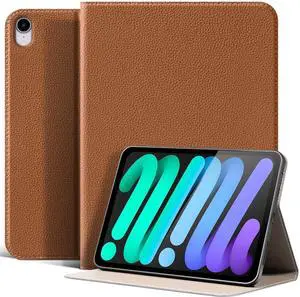 XFYKJIN Case for iPad mini 7 (A17 Pro) 2024, iPad mini 6th Generation 2021, Leather Protective Shockproof Smart Cover Adjustable Stand - Auto Wake/Sleep and Multiple View Angles,Brown