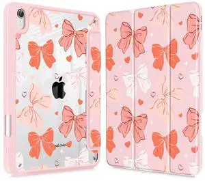 Lepeoac for Slim Case for iPad mini 7 (A17 Pro, 7th Generation) 2024 / iPad mini 6 (6th Gen) 8.3 Inch, [Built-in Pencil Holder] Clear Back Shell + Auto Wake/Sleep, Bows SD146