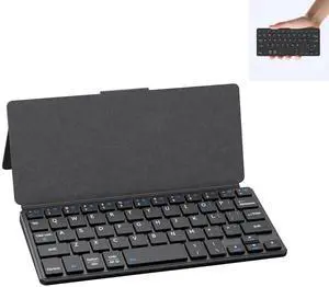 Mini Bluetooth Keyboard for iPad, Universal Portable Wireless Keyboards with Adjustable 150° Stand & Integrated Protective Cover, Travel Keyboard for iOS/Android/Windows - Black