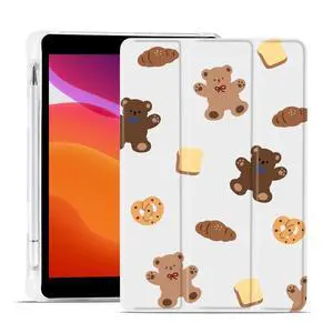 MAYCARI Original Case for iPad Pro 11 Inch 2022/2021/2020 with Pencil Holder, Bread Teddy Bear iPad Pro 11 Inch 4th/3rd/2nd Generation Soft TPU Back Protective Cover Shell, Auto Sleep/Wake Slim Shell