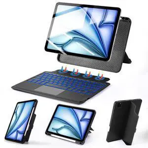 Touchpad Keyboard case for iPad Air 11 Inch M4 M3 M2 2026 2025 2024 iPad Pro 11 2022 2021 2020 2018 iPad Air 5th 4th Gen 10.9 Bluetooth Keyboard Cover with 7 Color Backlit Pen Holder Screen Protector