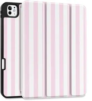 DONGKE Case for iPad Pro 11 inch (M5 2025 / M4 2024, 6th & 5th Generation) [Built-in Pencil Holder] Ultra Slim PU Leather Trifold Stand Cover with Soft TPU Back, Auto Wake/Sleep, Pink Stripes