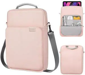 MoKo 9-11 Inch Tablet Sleeve Bag Handle Carrying Case with Shoulder Strap Fits New 11-inch iPad Pro M4/iPad Air M2, iPad 10th 10.9, iPad 9/8/7th 10.2, iPad Air 5/4th 10.9, Tab S8/S9 11, Pink