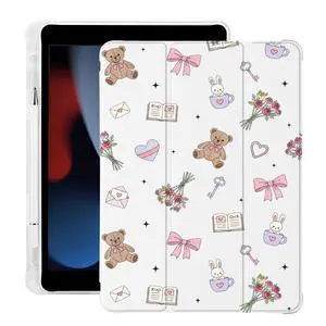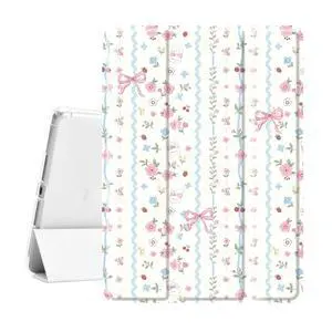 Idocolors Cute Kawaii Floral Bunny Bow Pad Case for 11 Inch iPad Pro(2024), Clear TPU Smart Stand Back Cover with Pencil Holder, Auto Wake/Sleep Foldable Shockproof Protective Case for Women Girls