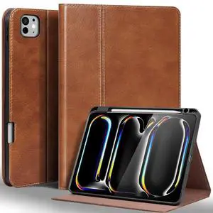 auaua Case for iPad Pro 11 Inch (M5/M4) 2025/2024, PU Leather Case with Pencil Holder, Supports Pencil Pro and Pencil(USB-C), Adjustable Angles, Auto Sleep/Wake (Brown)