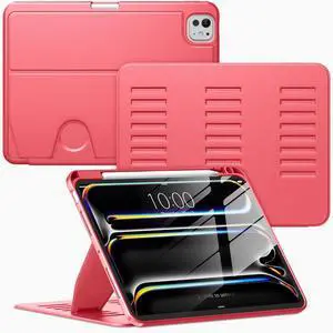 VIKESI Case for iPad Pro 11 inch (M5/M4) 2025/2024,Multiple Angles Magnetic Stand Cover,Shockproof Back,Pencil Holder,and Auto Sleep/Wake,Red