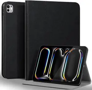 Gexmil Genuine Leather Case for iPad Pro 13 Inch (M5/M4) 2025/2024 with Adjustable Stand,Protective Shockproof Premium Leather Smart Folio Cover Auto Sleep/Wake Anti-Slip,Cross-Hatched Black