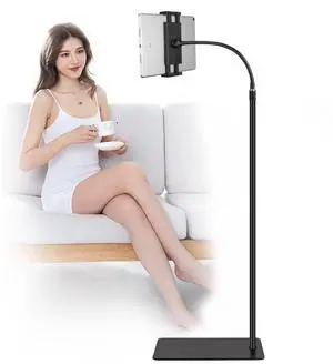 Tablet Floor Stand with 4.5LB Heavy Metal Base Overhead Bed Phone Stand Angle Height Adjustable Holder Universal Phone Mount for iPad iPhone Pro Air Mini Tab Kindle E-Readers...