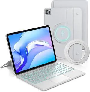 Nillkin iPad Air 13 inch (M3 2025/M2 2024) Case with Detachable Keyboard, iPad Pro 13 inch (M4,2024), Adhesive Cover with Keyboard, Trackpad, 7-Color Backlit, Magnetic Backplate with iPad Wall Mount