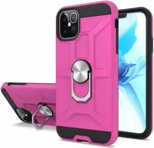 Dynamic Dual Layer Hybrid Case with Ring Stent Finger Loop for iPhone 12 / iPhone 12 Pro - Hot Pink